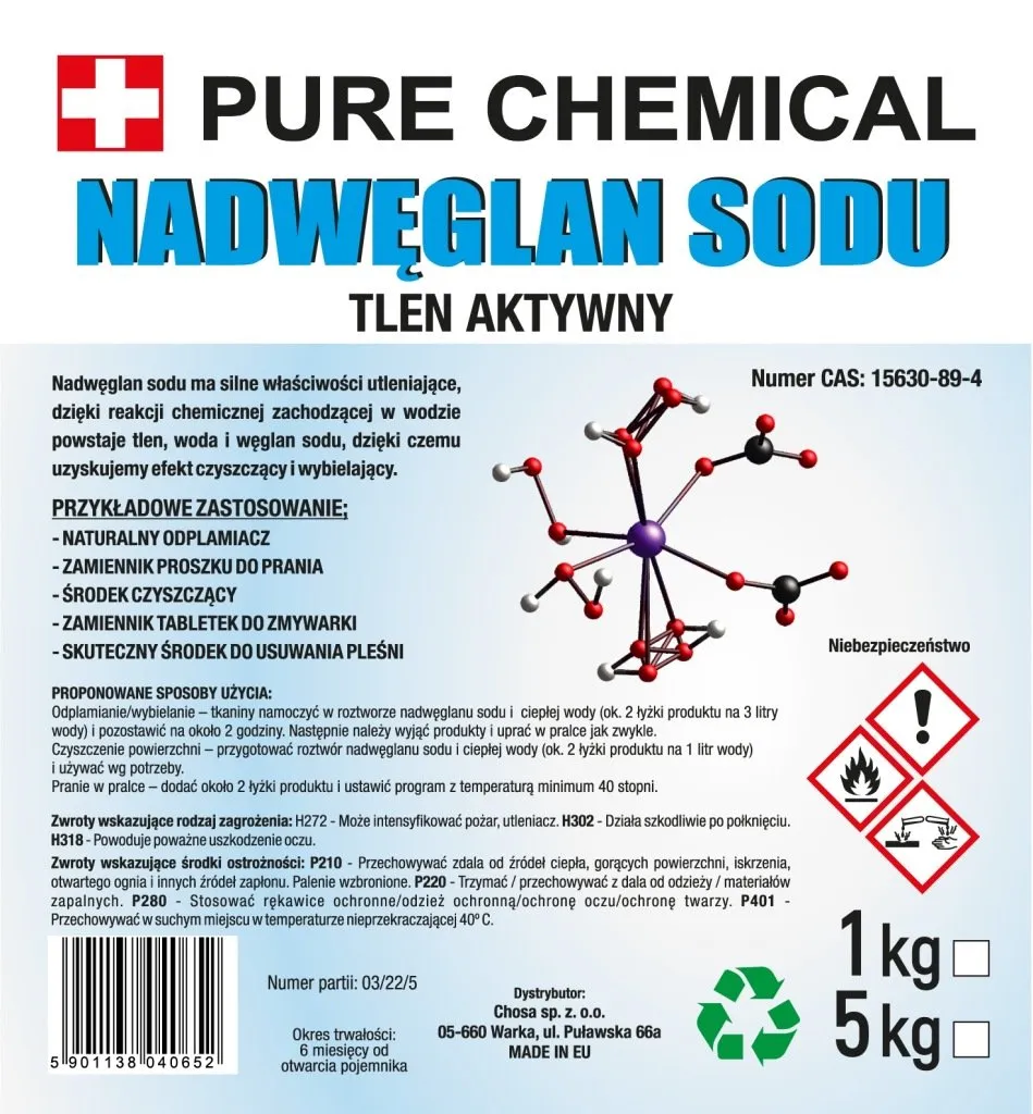 Nadtlenek sodu do prania i czyszczenia, forma proszkowa to odczynnik chemiczny przeznaczony wyłącznie do zastosowań laboratoryjnych, badawczych i profesjonalnych.