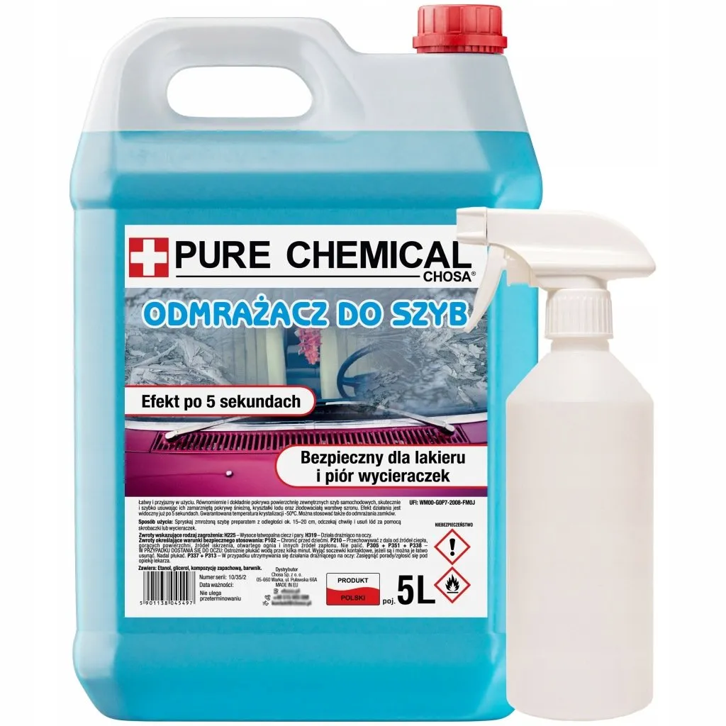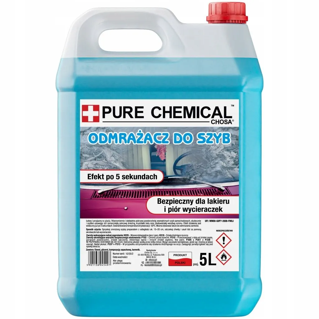 Różnica leży w temperaturze działania – tanie wersje często działają tylko do -20°C, podczas gdy ten produkt skutecznie działa do -40°C dzięki wyższej koncentracji alkoholi i lepszej stabilności mieszaniny. Dodatkowo, zawiera dodatki przeciwzakładowe i ochronne dla szyb. Skład jest zoptymalizowany pod kątem szybkiego parowania i braku resztek. Jest też bardziej ekonomiczny w zużyciu – wystarczy mniej płynu na jedno odmrożenie.